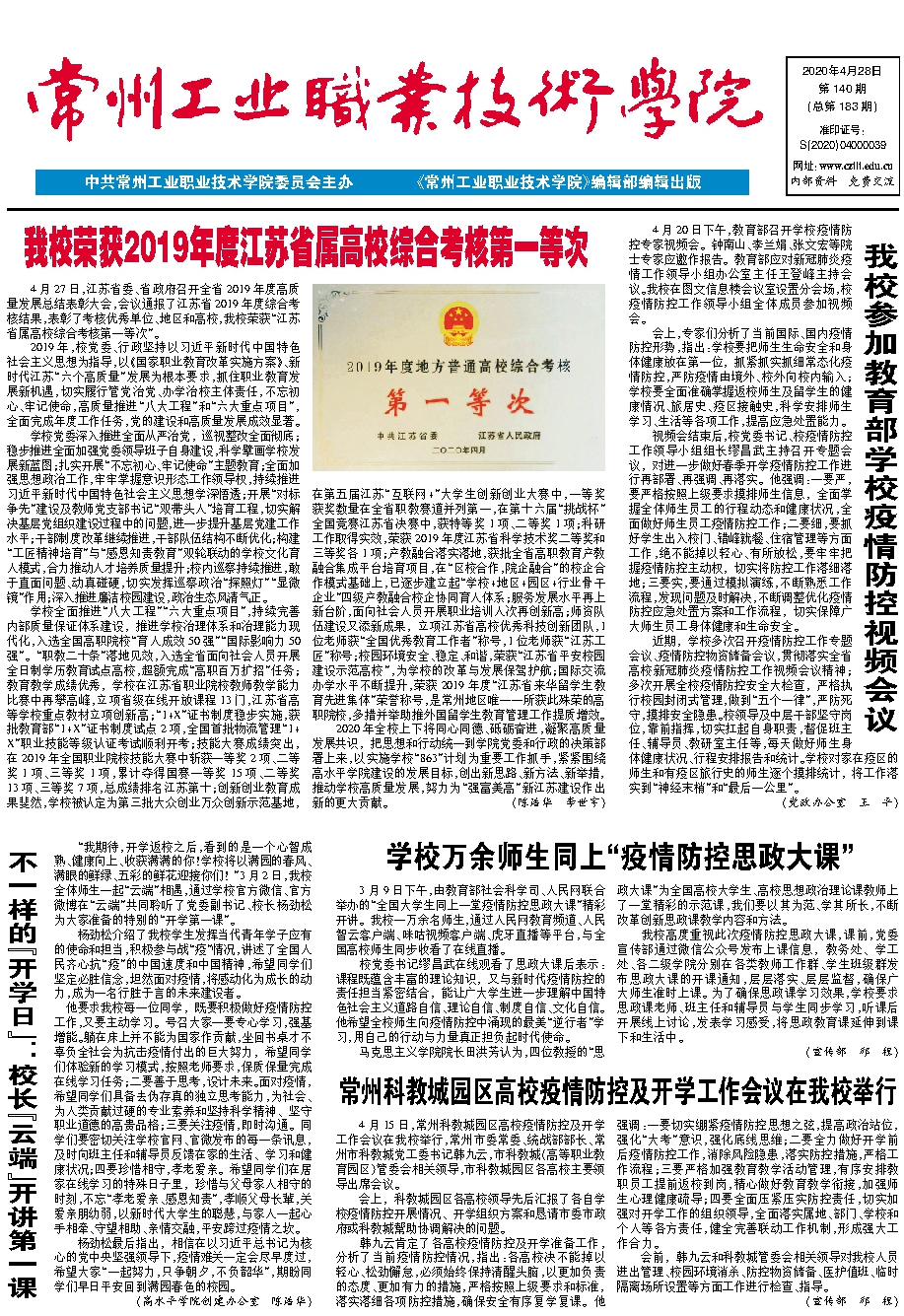 常州工业职业技术学院报2020年4月28日第140期总第183期