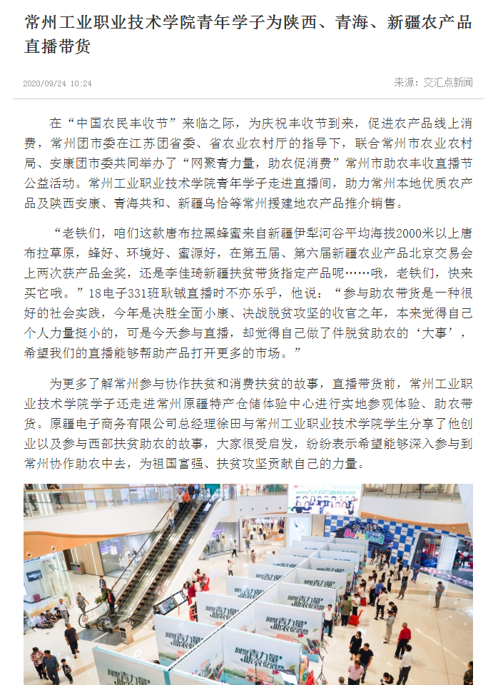 交汇点新闻-常州工业职业技术学院青年学子为陕西、青海、新疆农产品直播带货
