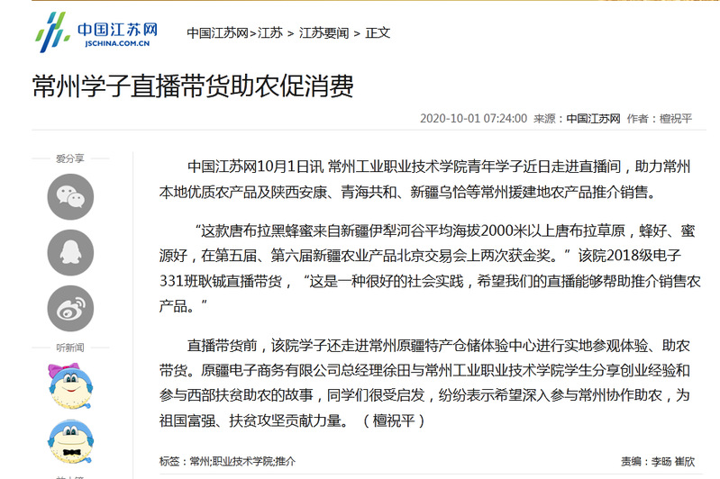 中国江苏网- 常州学子直播带货助农促消费