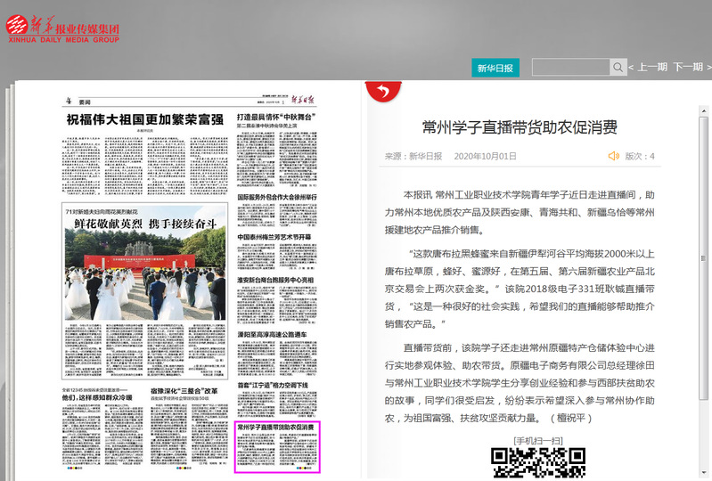 新华日报-常州学子直播带货助农促消费