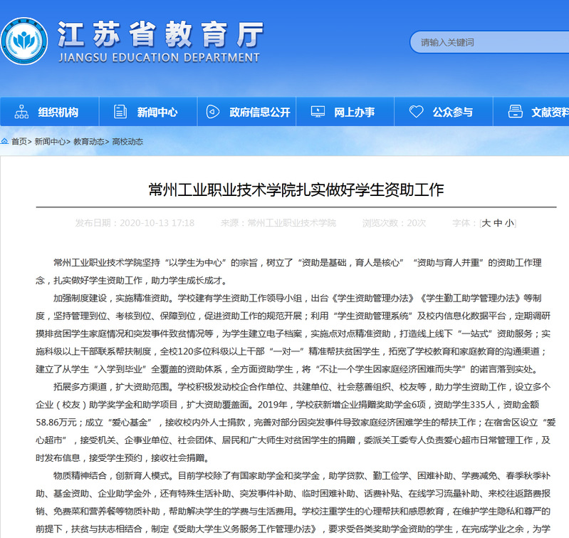 江苏省教育厅-常州工业职业技术学院扎实做好学生资助工作