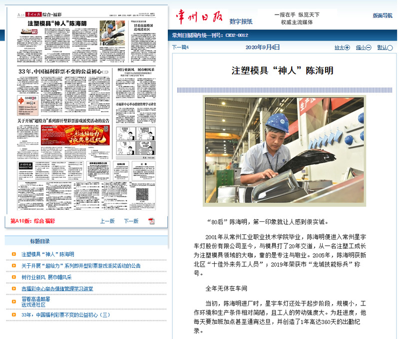 常州日报-注塑模具“神人”陈海明