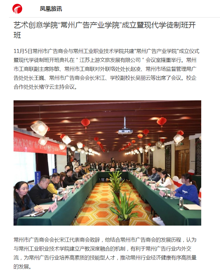 凤凰旅讯-艺术创意学院“常州广告产业学院”成立暨现代学徒制班开班