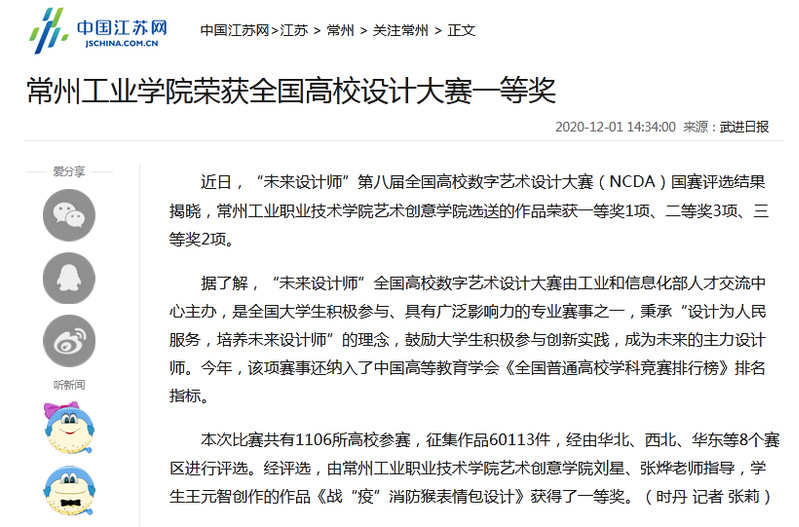 中国江苏网-常州工业学院荣获全国高校设计大赛一等奖