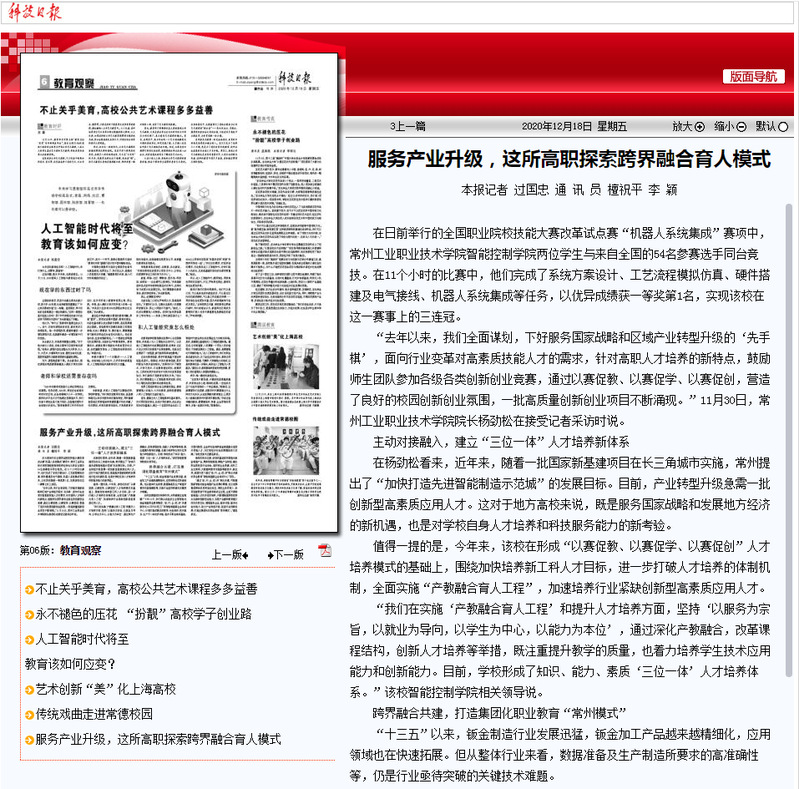 科技日报-服务产业升级,这所高职探索跨界融合育人模式