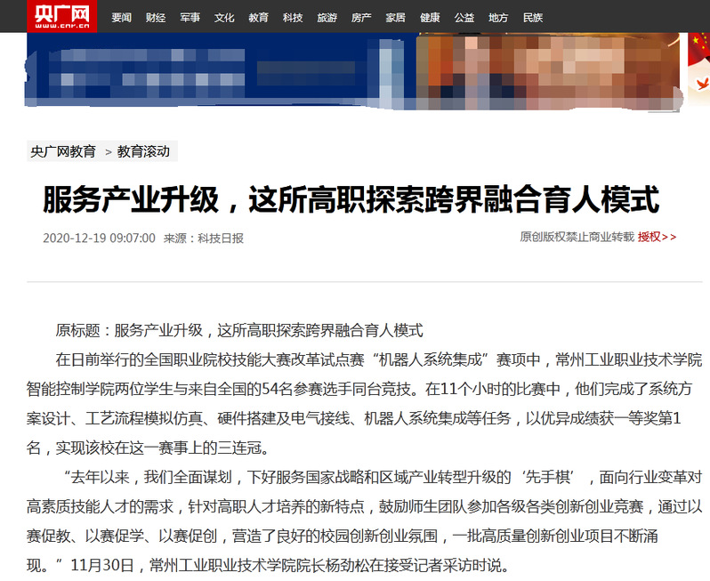 央广网-服务产业升级,这所高职探索跨界融合育人模式