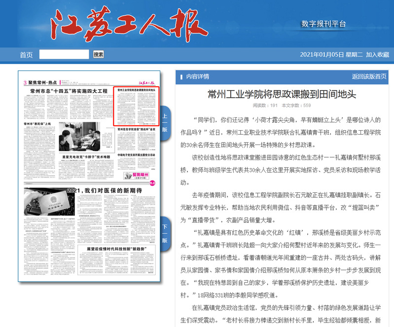 江苏工人报-常州工业学院将思政课搬到田间地头