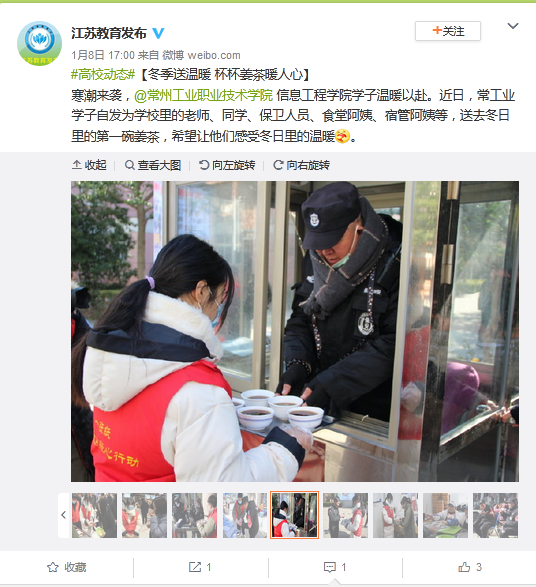 江苏教育发布-#高校动态#【冬季送温暖 杯杯姜茶暖人心】