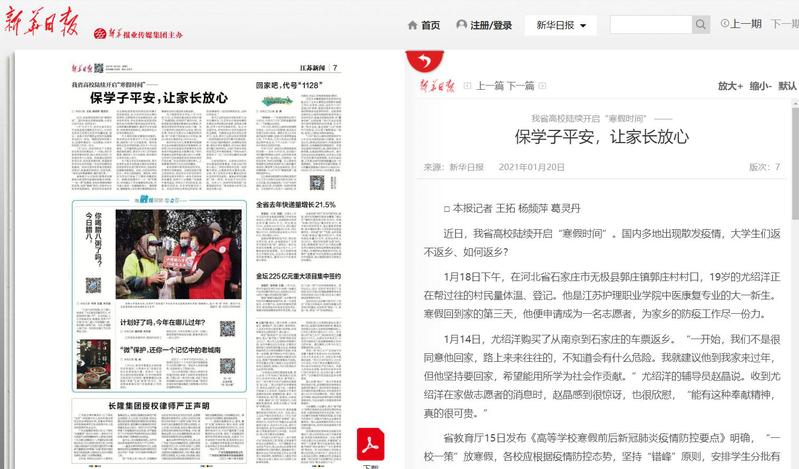 新华日报-我省高校陆续开启“寒假时间” 保学子平安,让家长放心