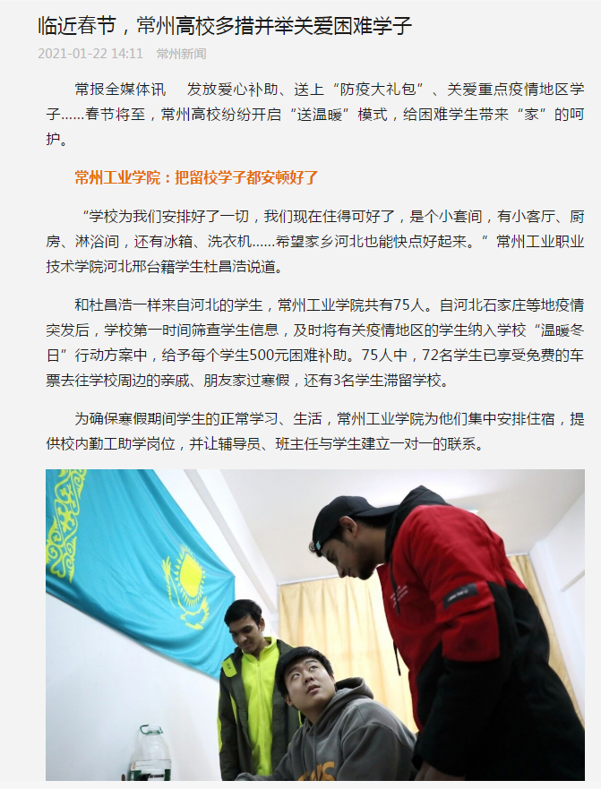 常州新闻-临近春节,常州高校多措并举关爱困难学子