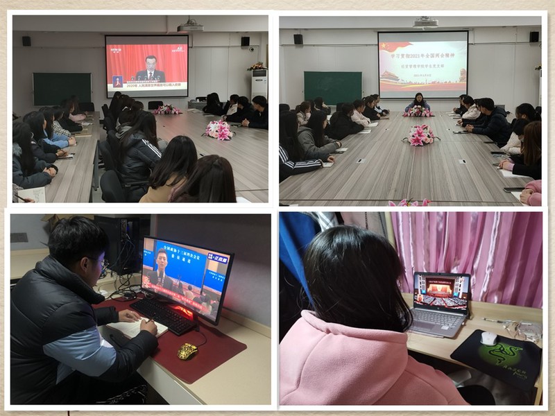 全国政协十三届四次会议和十三届全国人大四次会议分别于3月4日和3月5日在京开幕。站在“两个一百年”历史交汇点,2021年全国两会吹响奋进新征程的时代号角。为统一思想,凝聚力量,用“两会精神”指导、推动学生队伍建设发展,近日来,经贸管理学院团委把学习贯彻好“两会精神”作为当前重要政治任务,在学生中全面掀起学习两会精神的热潮。