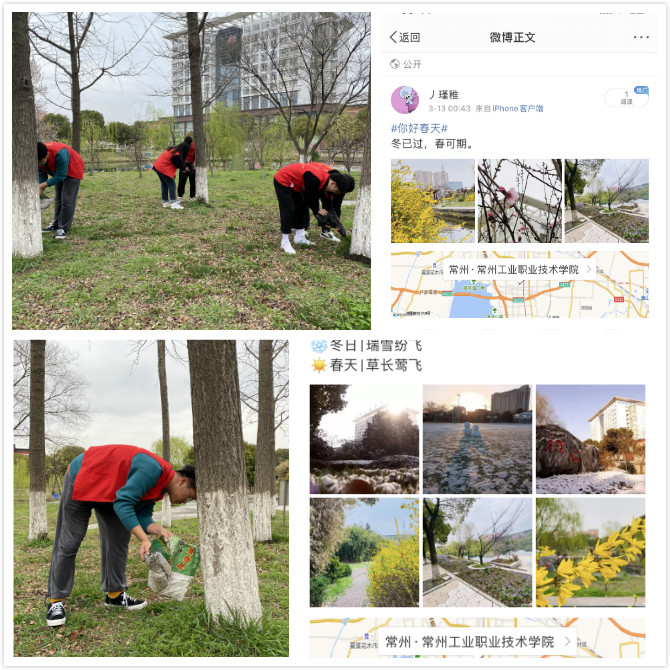 信息工程学院于3月组织了30名学生志愿者开展植绿护绿行动,为学院守护的银杏林松土施肥。当天,学生志愿者们认真听取老师讲授植物知识和绿化常识,接着为树木修枝、松土、施肥,积极认真,相互配合,干劲十足,以实际行动践行“绿水青山就是金山银山”理念。此外,信息工程学院还发动在校学生在微信、微博等线上平台发布校园风景相关图文消息,通过带有“你好春天”“低碳校园”“绿植领养”等话题的图文发布,在感受校园春意的同时为最美校园打call。