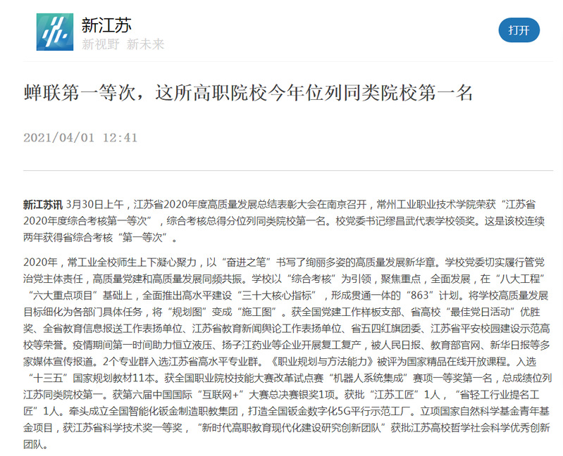 新江苏-蝉联第一等次,这所高职院校今年位列同类院校第一名