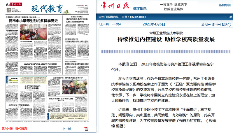 常州日报-常州工业职业技术学院持续推进内控建设 助推学校高质量发展