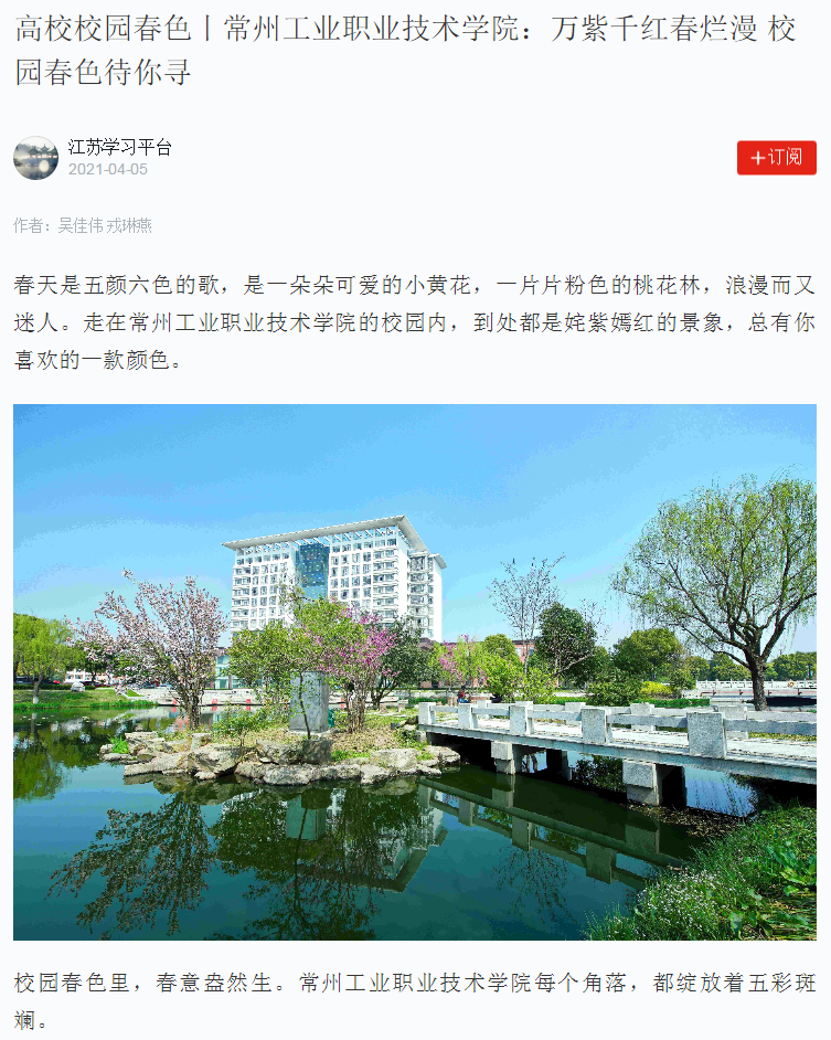 学习强国-高校校园春色丨常州工业职业技术学院:万紫千红春烂漫 校园春色待你寻