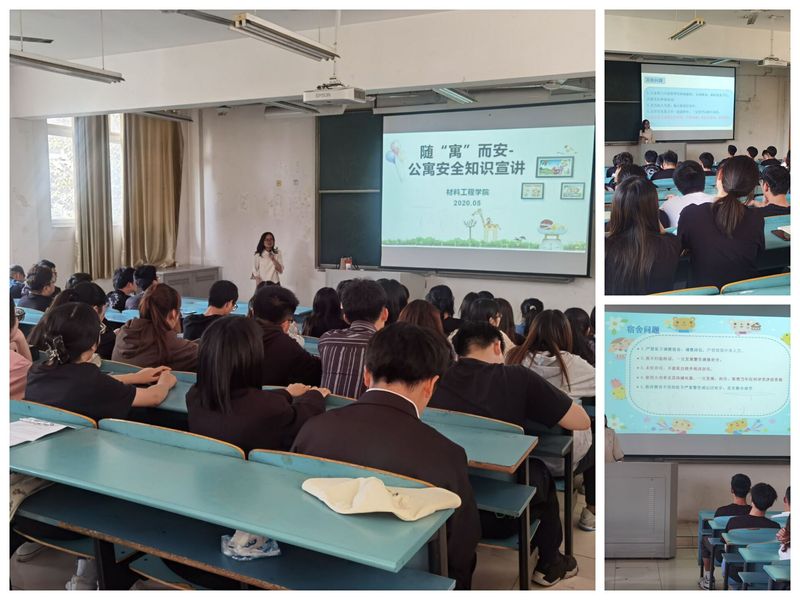 为进一步增强大学生的安全防范意识,提高自我保护能力,创建平安和谐的校园环境,5月10日,材料工程学院开展随“寓”而安---公寓安全知识主题讲座。讲座由材料学院辅导员陈彩云主持,2019级、2020级宿舍长及学生代表参加讲座。