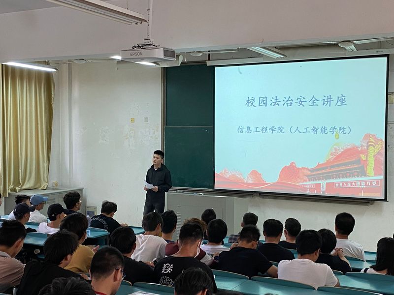 为提高我院学生的法律意识,大力弘扬法治精神,创建和谐校园,5月19日,信息工程学院开展主题为“与法同行”讲座,讲座由辅导员杜云豪主讲。