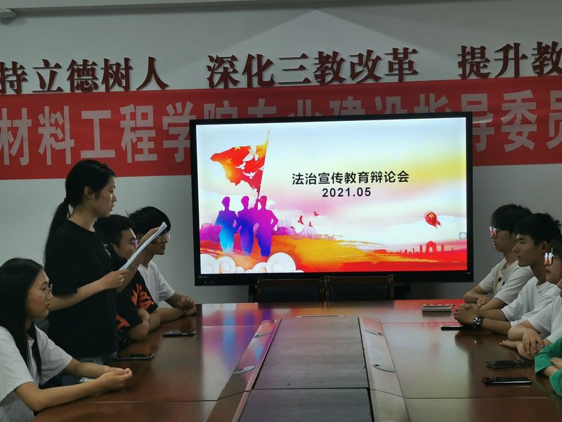 为进一步提升大学生法制观念,增强法治意识,弘扬社会主义法制精神,材料工程学院于5月18日开展“法制宣传教育辩论会”。
