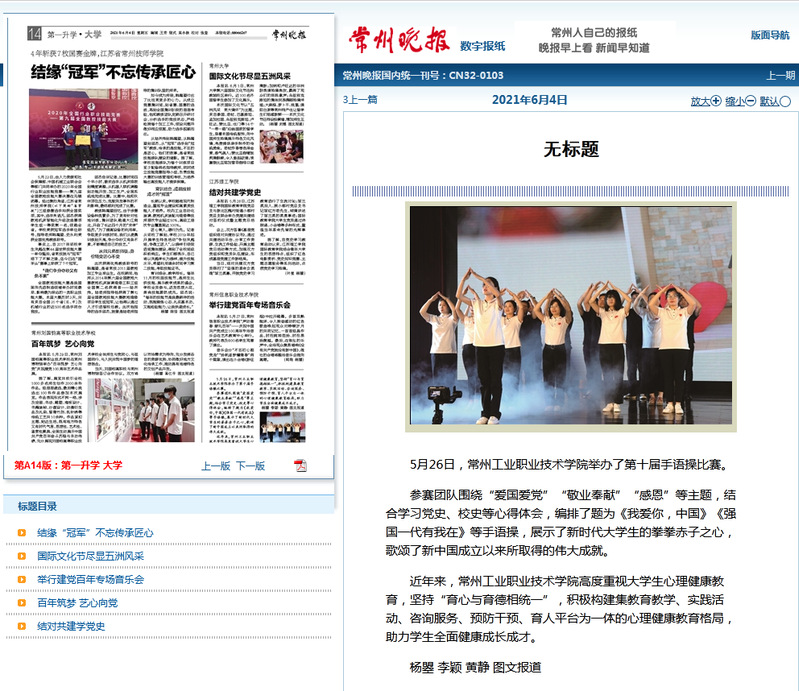 常州晚报-常州工业职业技术学院举办了第十届手语操比赛