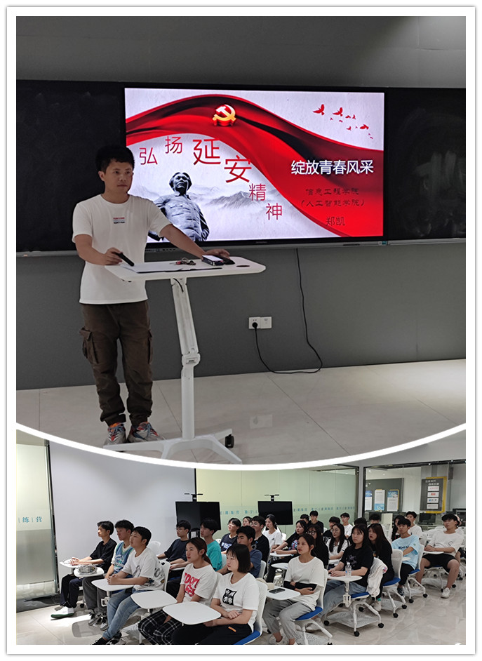 为进一步传承红色基因,引导广大学生筑牢信仰之基,补足精神之钙,6月24日,信息工程学院开展“弘扬延安精神,绽放青春风采”专题党课。主讲人为信息工程学院辅导员郑凯。