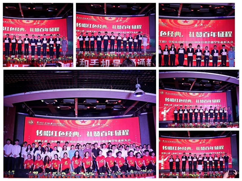 百年党史,风雨征程。值此建党100周年到来之际,为树立示范典型,营造良好学风氛围,进一步激励广大学生奋发向上,6月23日,材料工程学院在校文体中心举办主题为“传唱红色经典礼赞百年征程”的大型红歌会暨学生表彰大会。材料工程学院党总支书记嵇天培,党总支副书记潘逸,分团委书记周益、全体辅导员和2019级、2020级学生参加大会。