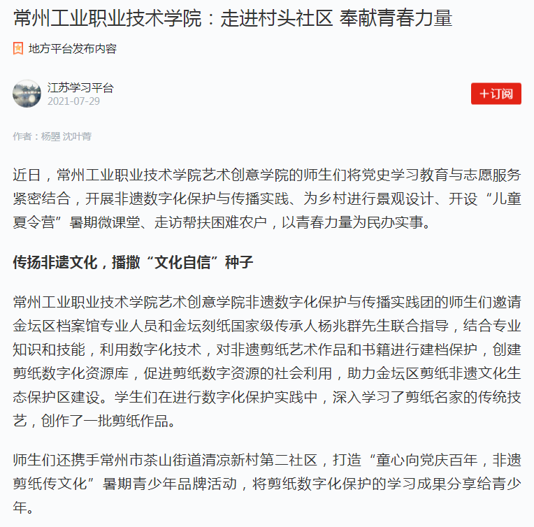 学习强国-常州工业职业技术学院:走进村头社区 奉献青春力量