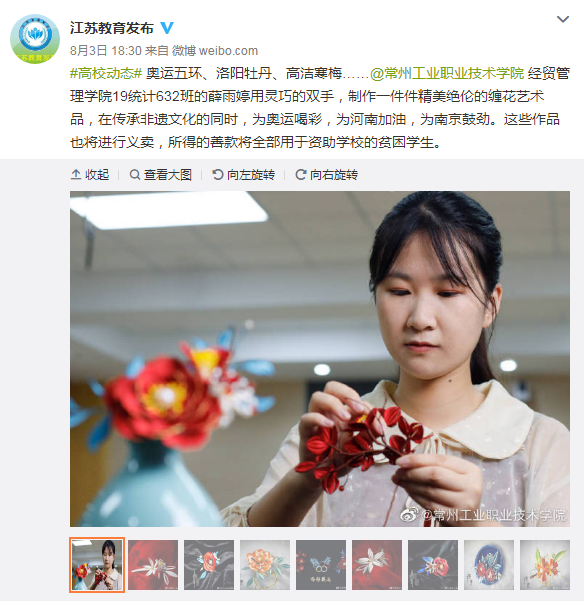 江苏教育发布-#高校动态# 常州工业学院女生凭借缠花手艺“出圈”