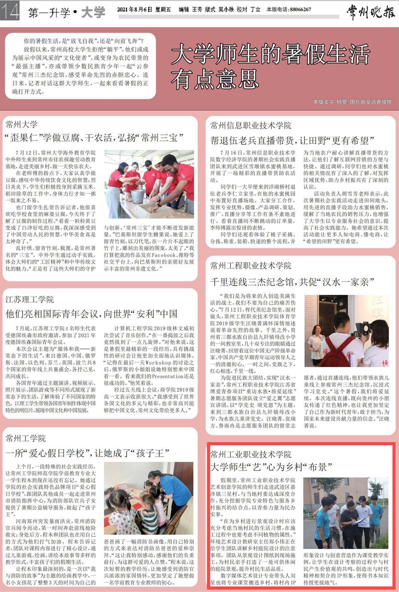 常州晚报-大学师生的暑假生活有点意思