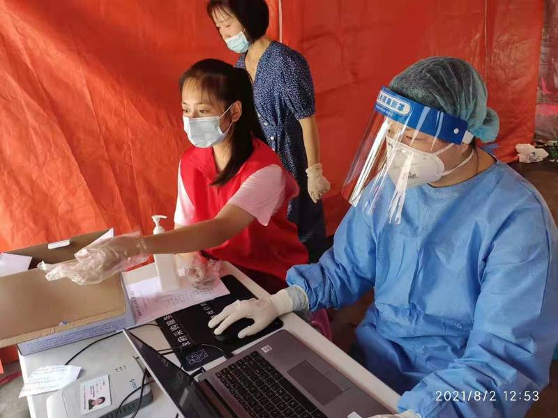“爷爷您好,请戴好口罩!”“奶奶,拿好试管往这边走!”“139……”随着天气越来越热,在检测点井然有序的工作中,志愿者们大汗淋漓,排队的人群里却没有一句抱怨。“核准,再核准,张军洁,听你最后确认了,我再录入电脑系统!”医务工作负责人笑着看了她一眼说,“我相信你的党性觉悟,因为你是一名合格的入党积极分子,是轨道学院分团委副书记!”“我们是大学生团员,在国家和人民危难时刻来一线参加志愿服务工作,请组织相信我们!”张军洁慷慨激昂地说。