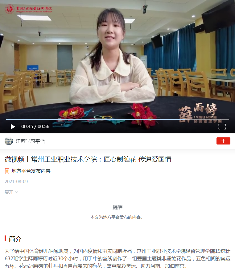 学习强国-常州工业职业技术学院:匠心制缠花 传递爱国情