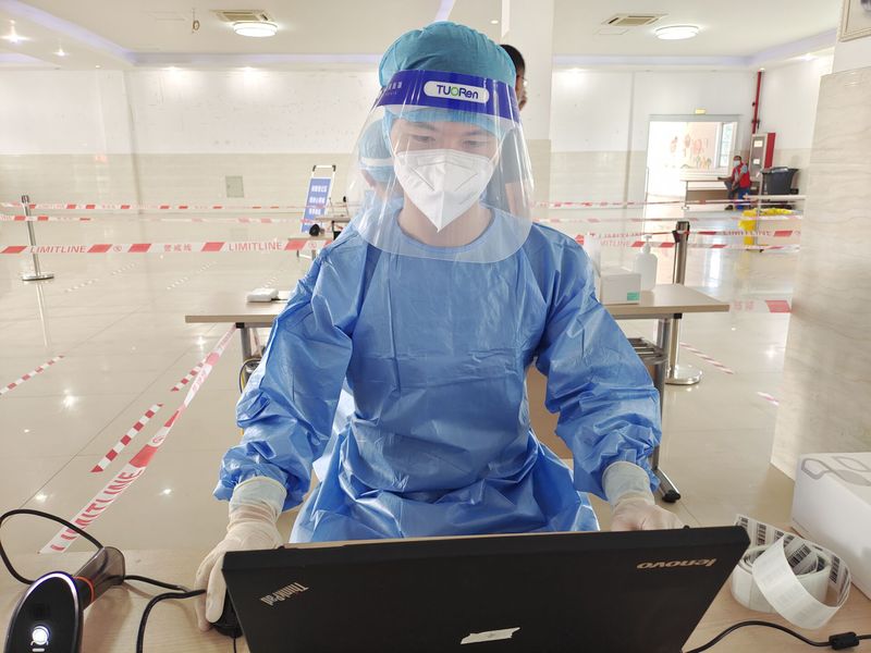 疫情发生后,南京疫情防控形势严峻,人手不足,20室内332班胡煜同学当得知南京地区在紧急向社会招募疫情防控志愿者时第一时间报名参加,经组织安排,她加入到南京市江北新区天景社区龙湖天街疫情防控志愿者的队伍中。她每天主要负责撰写疫情防控信息稿、做好南京禄口机场返回人员统计及疫情排查表;为居民办理健康证明和通行证,测量体温,检查苏康码和行程码;为需要进行接种的人员发号,维持现场秩序,确保能让他们尽快接种疫苗,为不方便的人提供帮助等工作。她说:“虽然每天的工作非常忙碌,但是能为抗疫工作贡献自己的一份力量,感到很自豪,我相信南京一定能打赢这场战役!”