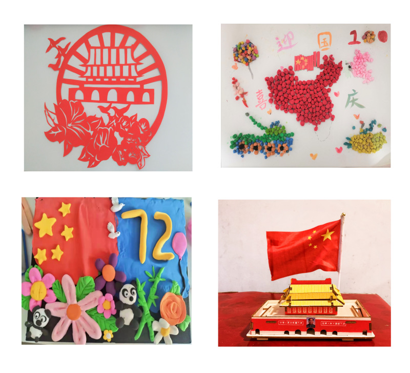 本次创意手工活动让学生在动手操作中丰富自身的心理体验,在作品创作中得到心灵放松,也有机融入爱党爱国元素,营造了庆祝中华人民共和国成立72周年的喜悦氛围,将爱自我与爱党爱国爱社会主义相统一。各班学生踊跃报名参加,居家就地取材,精心创作手工作品,并录制视频记录自己的制作过程。