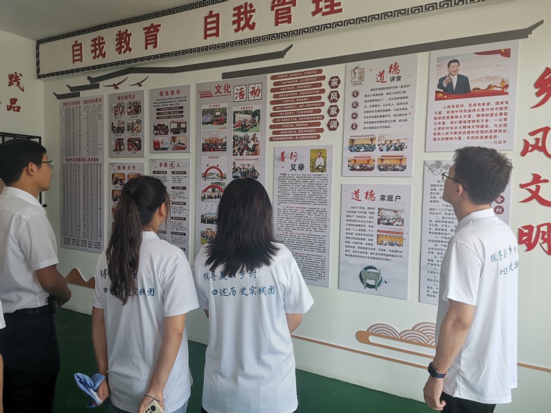 从黄金村靳书记口中,我们得知黄金村每年都会评选“道德家庭户”和“道德模范户”称号,以此来激励村民崇德向善,营造文明村风民风。每半年会召开一次村民代表大会,商讨村里重大决策及村务情况,征求群众意见,群策群力。我们参观黄金村党史文化墙、文化长廊,一幅幅生动形象的图片,无不在展示着黄金村的精神文明建设成效。我们还发现,黄金村充分利用稻田地理标志,在黄金稻田中修建稻米文化馆、劳动体验馆,与中小学合作开展学生劳动实践教育活动。