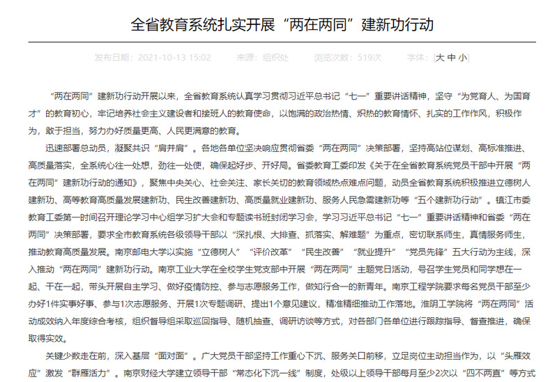 江苏省教育厅-全省教育系统扎实开展“两在两同”建新功行动