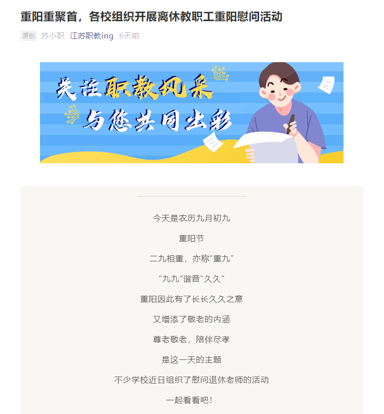 江苏职教ing-重阳重聚首,各校组织开展离休教职工重阳慰问活动