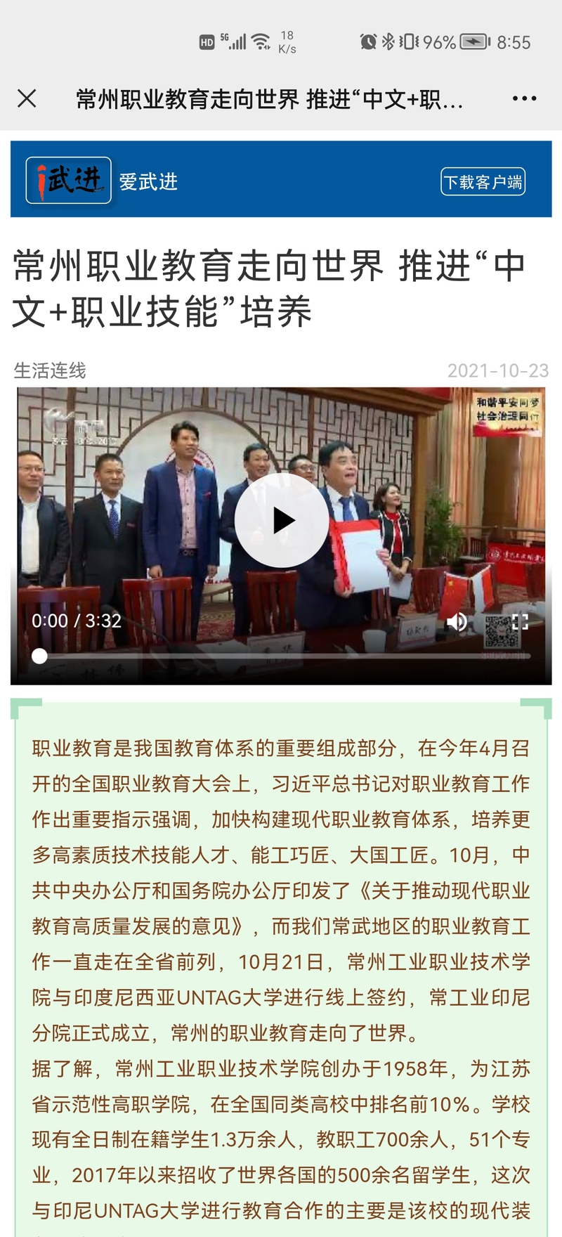 武进电视台-常州职业教育走向世界 推进“中文+职业技能”培养