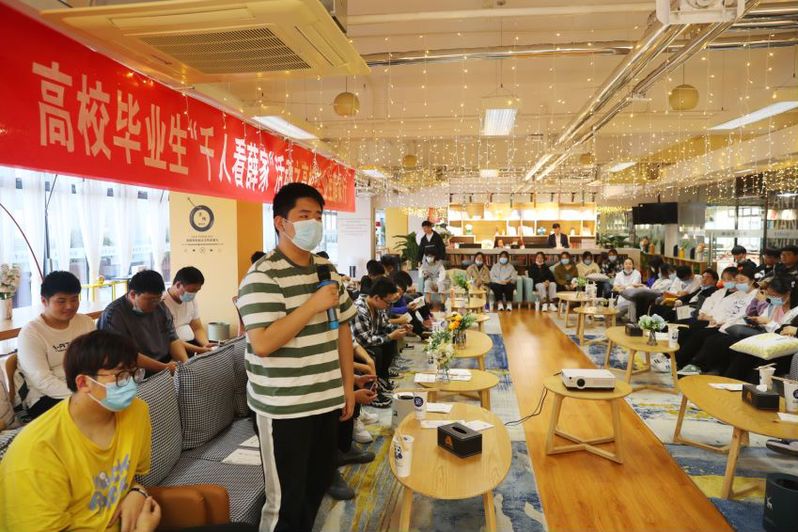 最后,薛家镇副镇长王颖、万丽娜和前往参观的师生参观了人才公寓并进行了座谈。王丽娜向大家介绍了薛家的企业数量、岗位需求、人才引进政策等,参观学生也在座谈会上发表了今天薛家行的所看、所想、所感,认为本次活动为今后就业工作提供了机会和平台,意义非凡。