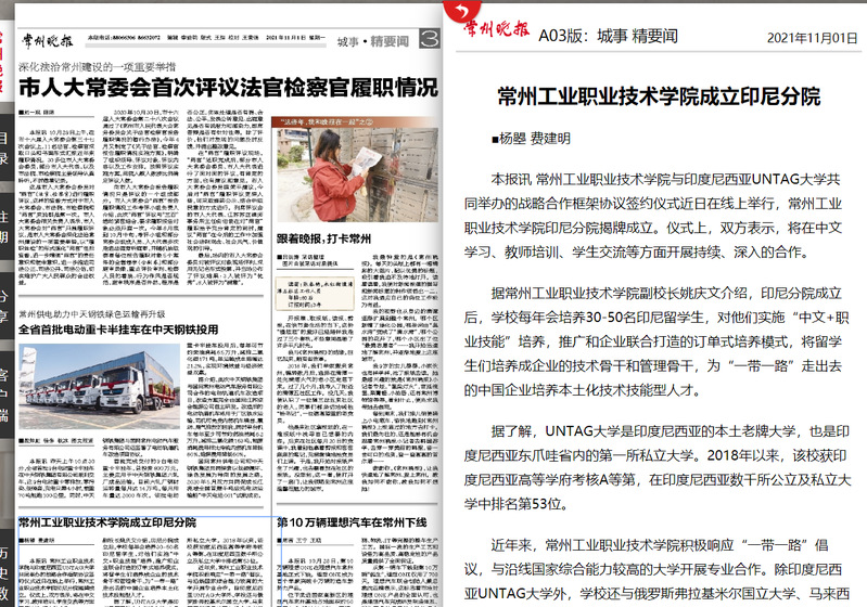 常州晚报-常州工业职业技术学院成立印尼分院