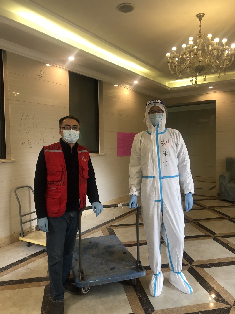 “小伙子,这个汤面要赶紧送上去啊,不然要糊掉的!”“小伙子,我托人给买了豆腐和毛豆,送到小区了,你赶紧帮我送来啊,等不及啦!”天宁区青龙街道龙湖郦城118幢的楼道里,一位身穿防护服的年轻人正在忙碌着,他是信息工程学院学生党支部的积极分子胡永龙。在志愿者群里,他看到卢剑伟老师主动报名,紧随其后加入抗疫行动中,担任了封锁楼栋“搬运工”的角色。每一天,他都为楼栋里的居民分发捐赠的物资,派送居民的快递和外卖,尽可能满足居民的各类需求。“有时候封闭的居民会烦躁不安,我们都很理解,想尽办法安抚他们,尽量满足他们的需求。大家都是善意满满,听到他们的感谢我的心里也是暖暖的。”胡永龙说道。接下来,他还要为御城和九州君玺的居民发放常州市企业信息化协会捐赠的防疫物品,相信他一定能在抗疫战斗中继续发挥青春的力量。