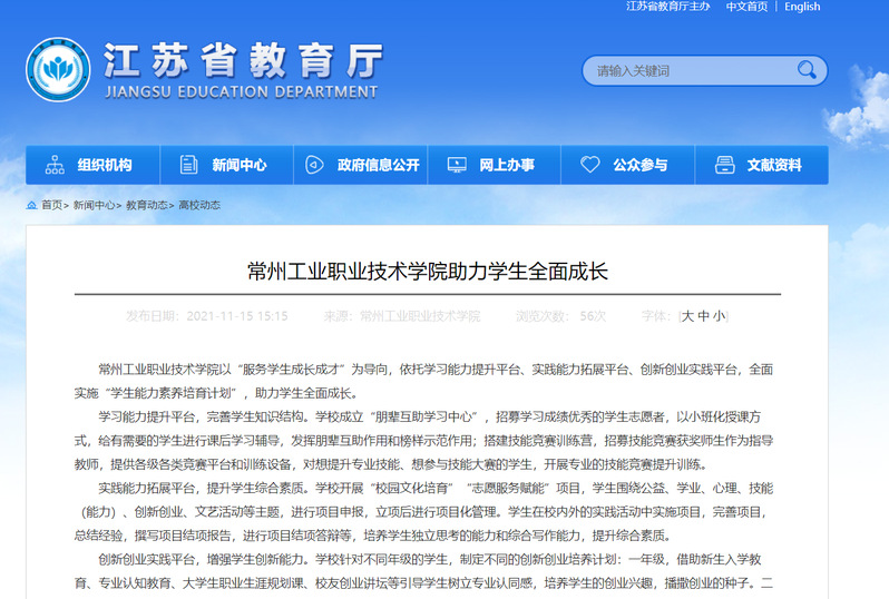 江苏省教育厅-常州工业职业技术学院助力学生全面成长