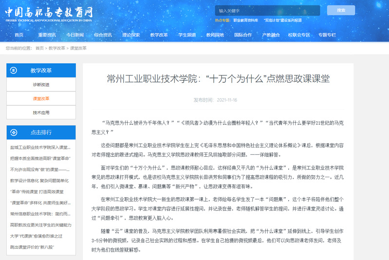中国高职高专教育网-常州工业职业技术学院:“十万个为什么”点燃思政课课堂