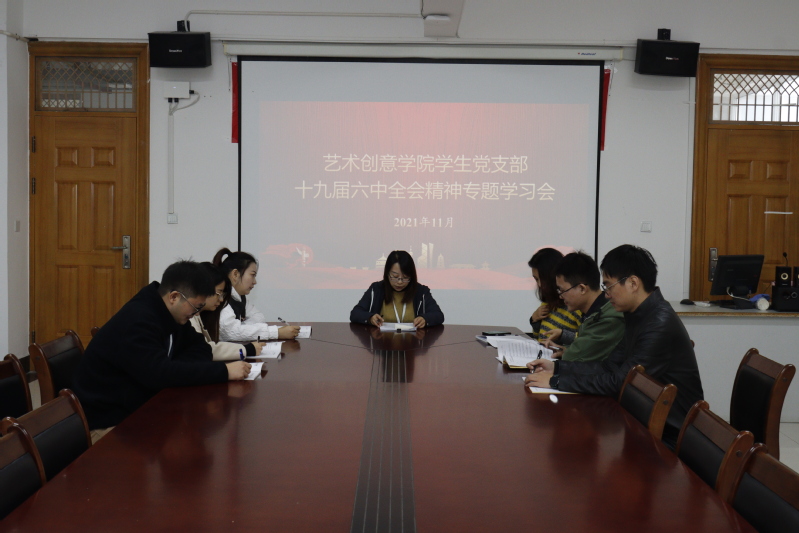 为了学习贯彻党的十九届六中全会精神,扎实推进艺术创意学院学生党支部党史学习教育,11月17日,艺术创意学院学生党支部组织全体支部成员在敬业楼401开展集中学习,收听收看全会相关报道,专题学习全会精神。