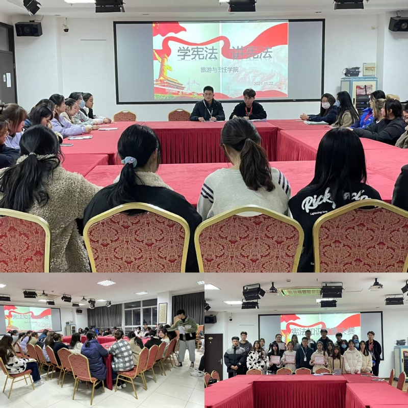 为深入学习贯彻习近平法治思想,特别是习近平总书记加强宪法法治宣传教育的重要指示精神,普及法制知识,培养法制观念,弘扬宪法精神,11月22日晚,旅游与烹饪学院“学宪法 讲宪法”知识竞赛在图文楼908举办,辅导员王杰、学生会成员以及全体参赛学生参加了活动。