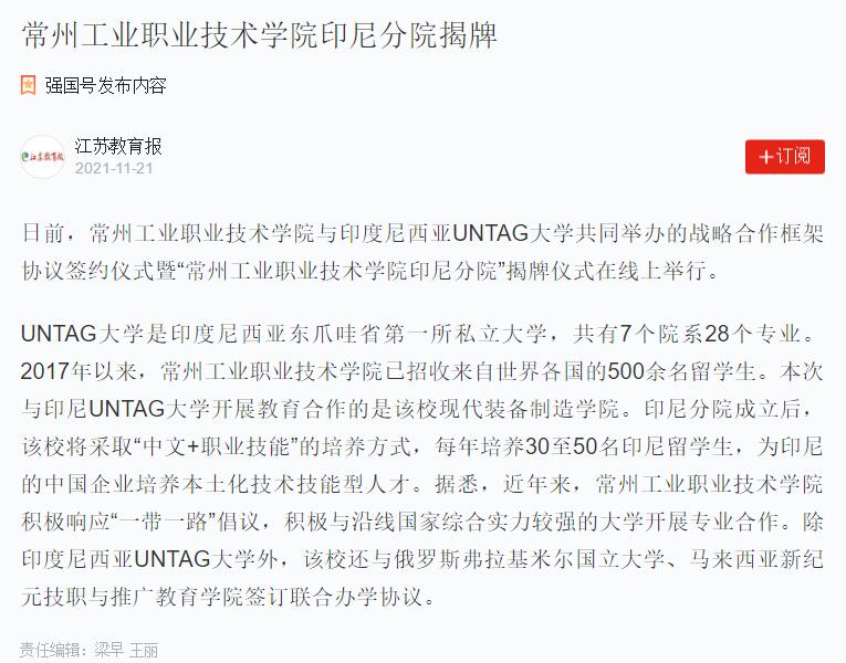 学习强国-常州工业职业技术学院印尼分院揭牌