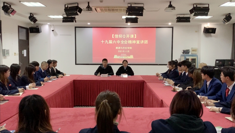 11月30日,旅游与烹饪学院“青马工程”培训班专题学习党的十九届六中全会精神。会议由分团委书记郑新涛主持,学生办公室主任何从娜参会。