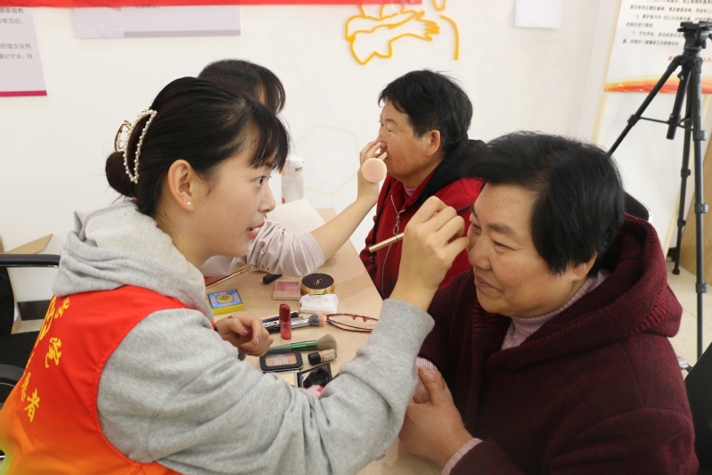 “奶奶,小心台阶,咱们先来这边画个妆,一会让摄影师把您拍得美美的”“爷爷,您再调整下坐姿,我来帮您整理下发型,我们换个背景再来一张”这是艺术创意学院学生党支部“定格年华,照亮幸福”我为群众办实事免费证件照拍摄主题党日活动的现场缩影。