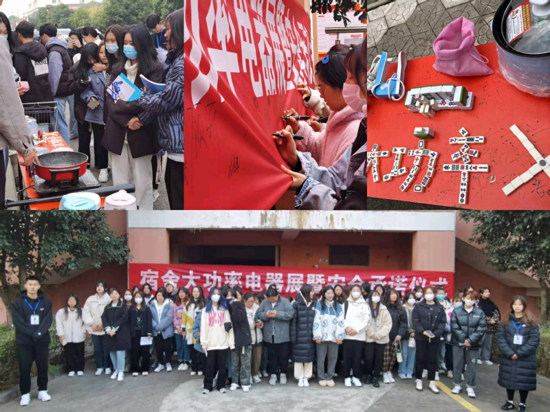 为贯彻落实中央、省市关于加强高校安全工作的具体要求,提高学生安全防范意识、保障师生生命安全,12月9日,我院组织学生在学生公寓楼下开展拒绝使用大功率电器倡议签名活动暨违规电器实物展。活动由辅导员王杰与学生会成员组织开展,2020、2021级学生参与。