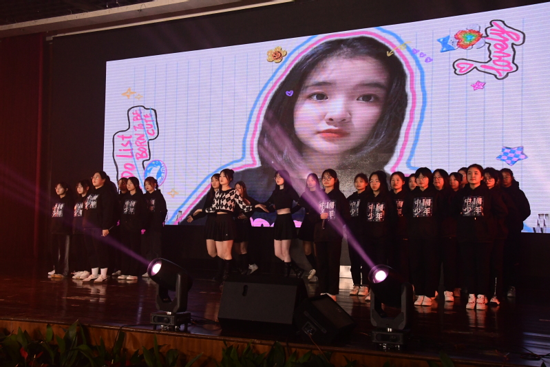 比赛现场,各班同学热情洋溢,倾情展示。《我们的时光》《逆态度》《我相信》《水手》《我的未来式》等一首首歌曲都传递着青春正能量。班歌或怀旧、或新潮、或抒情、或昂扬,虽风格迥异,但都用满腔热情表达了对祖国和党的热爱。班徽设计构思精巧、各具特色,展示出同学们对梦想的不断追求和对祖国繁荣昌盛的美好祝福。一面面色彩鲜艳的班旗,一首首脍炙人口的班歌,一张张昂扬笑意的青春面容构成了今晚最绚丽的风景。最让大家感动的是全体2021级辅导员老师全程参加了活动,与学生同台演出。师生同台的场景带动了全体同学的的热情,为现场观众奉献了一场文化和娱乐的饕餮盛宴。