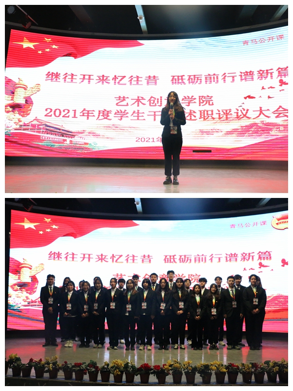 为了进一步提高学生干部的能力和素质,加强学生干部“自我管理、自我约束、自我服务”意识,促进学生会工作的科学化、规范化,12月18日,艺术创意学院在文体中心小剧场召开“继往开来忆往昔,砥砺前行谱新篇”2021年度学生干部述职评议大会,艺术创意学院全体学生干部参加了本次大会。