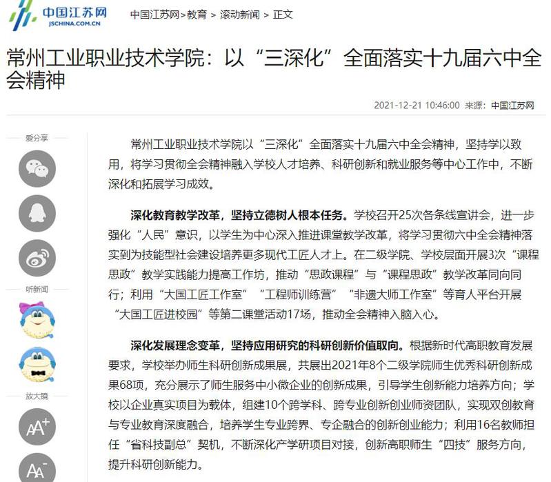 中国江苏网-常州工业职业技术学院:以“三深化”全面落实十九届六中全会精神